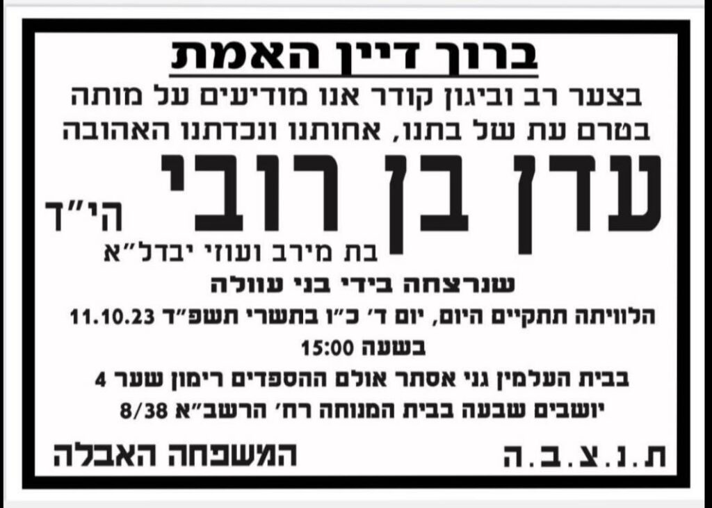עדן שלי, את כבר לא תחזרי אלינו, לא תגשימי את החלומות שלך, לא תתחתני, ולא תביאי ילדים לעולם.